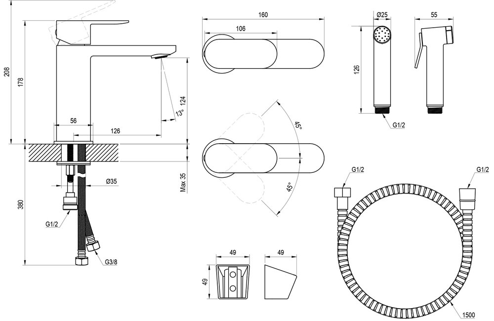 • Vyhotovenie: s ručnou bidetovou sprškou so spätným ventilom