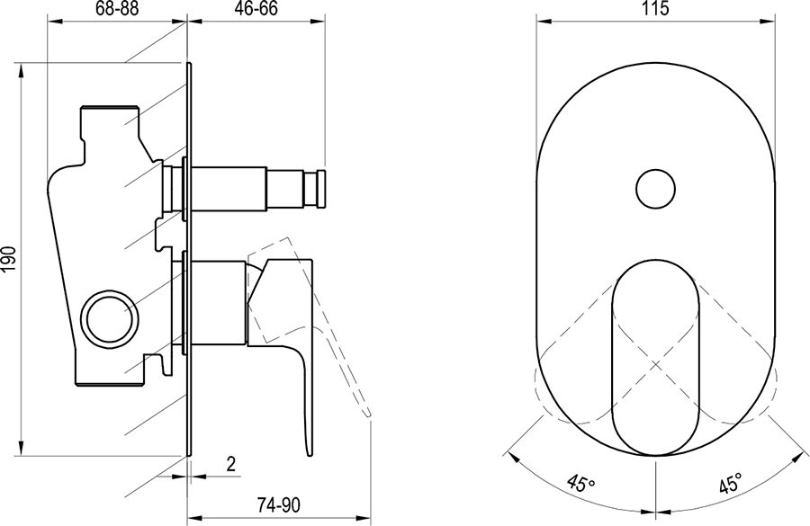 Ravak EL 061.00CR.O2 Podomítková baterie 2-cestná s tělesem, Chrome lesklý chrom