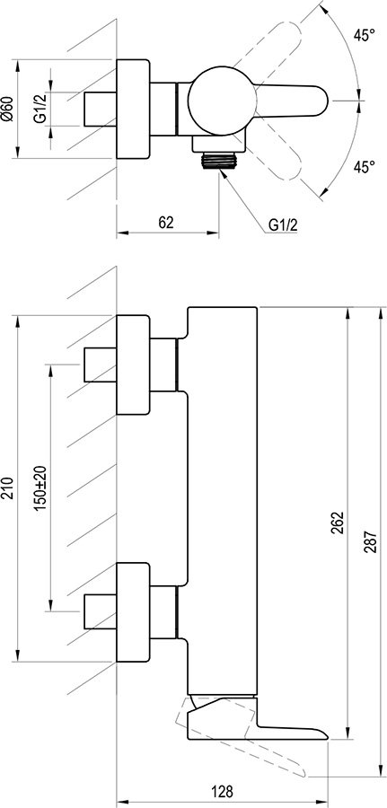 Nástenná sprchová batéria Puri, bez sprchového setu. V chrómovom vyhotovení. S funkciou CoolFeel zabraňujúcou nadmernému ohrievaniu povrchu batérie.