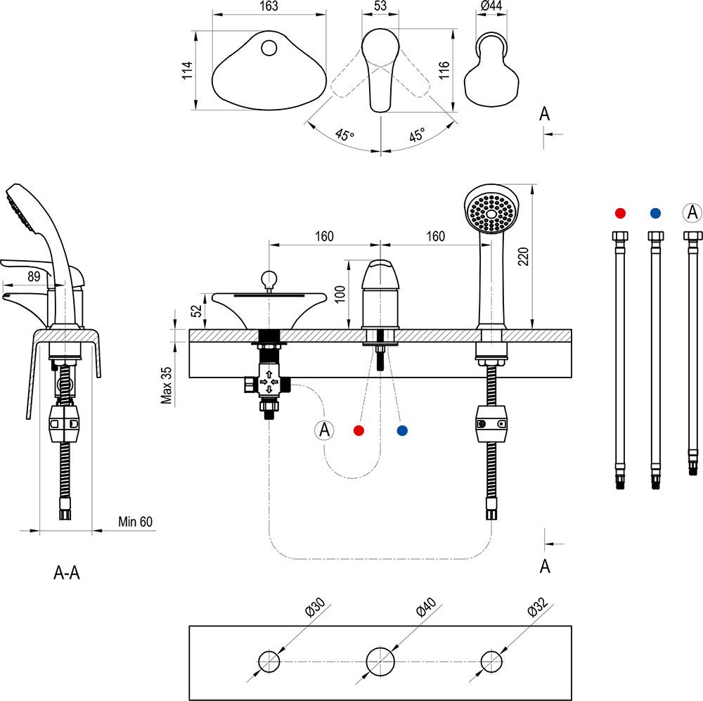 Hadice ruční sprchy se ukrývá v lemu vany, případně pod deskou za vaší vanou. Sprcha vám tak nepřekáží během koupele, a přitom ji máte stále po ruce.
